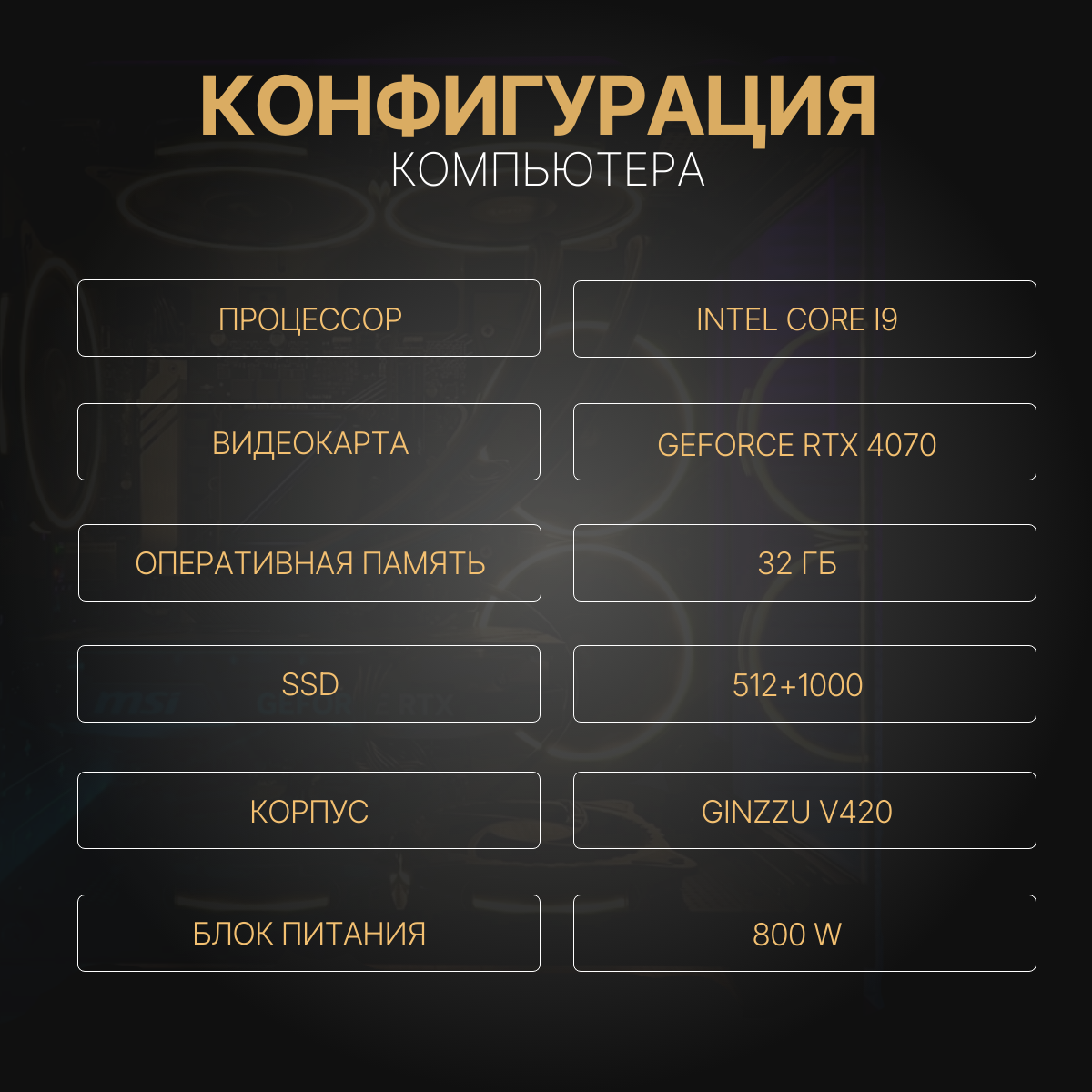 Мощный игровой компьютер (системный блок) Core i9-12900 16ядер/RTX4070/32GB/512Gb+1Tb SSD/800W/Win 10 PRO информация: