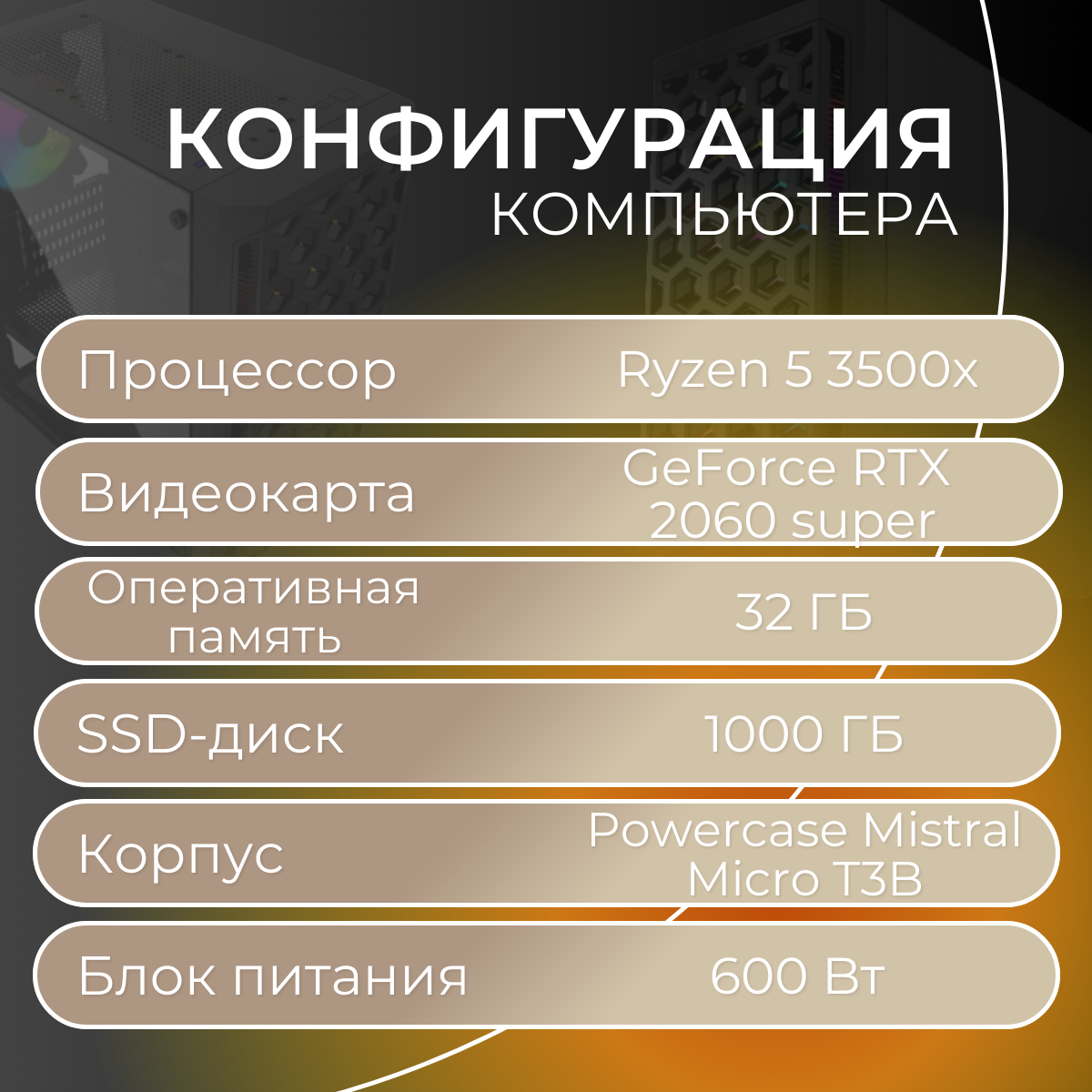 Мощный игровой компьютер (системный блок)Ryzen 5 3500x 6 ядер/ GeForce RTX 2060s/ 32GB DDR4/ SSD 1000гб /600 W/ Win 10 информация: