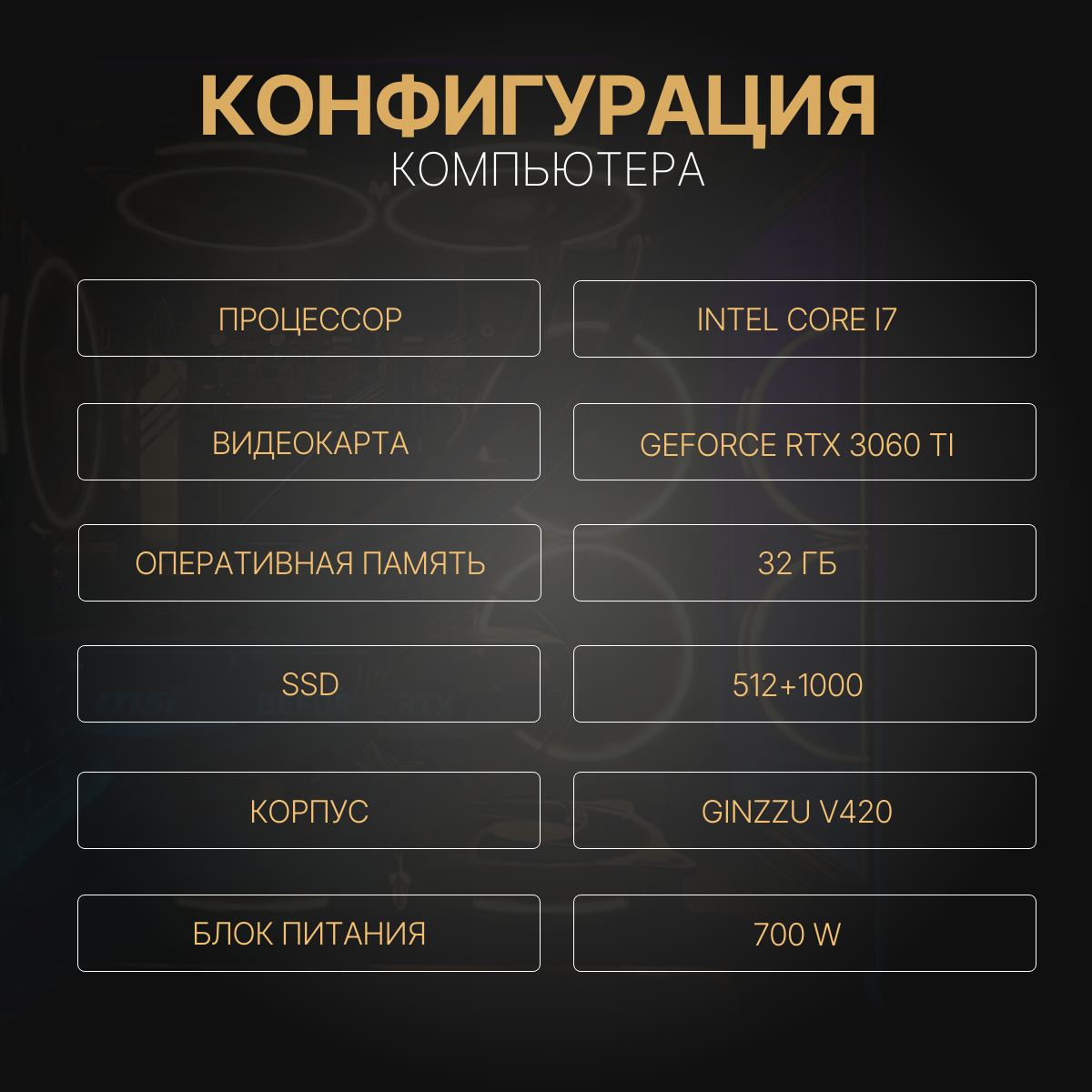 Игровой компьютер (системный блок) Intel Core i7-10700F/ RTX 3060 Ti/ 32ГБ/ SSD 512+1000 ГБ/ 700W/ Win10 Pro информация: