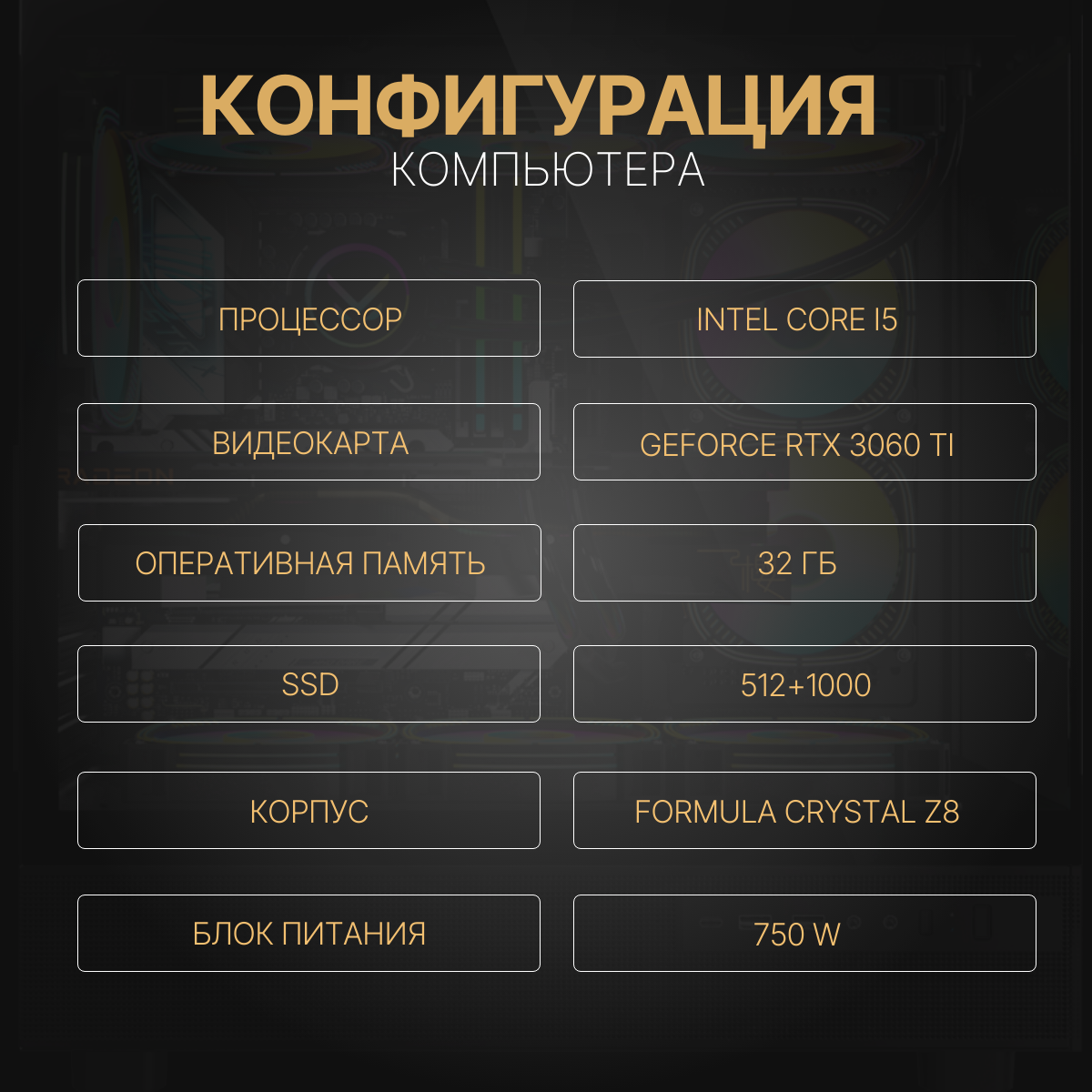 Мощный игровой компьютер (системный блок) Intel Core i5 12400F/RTX3060 Ti/32GB/SSD 512+1000 GB/750W/Win 10 PRO информация: