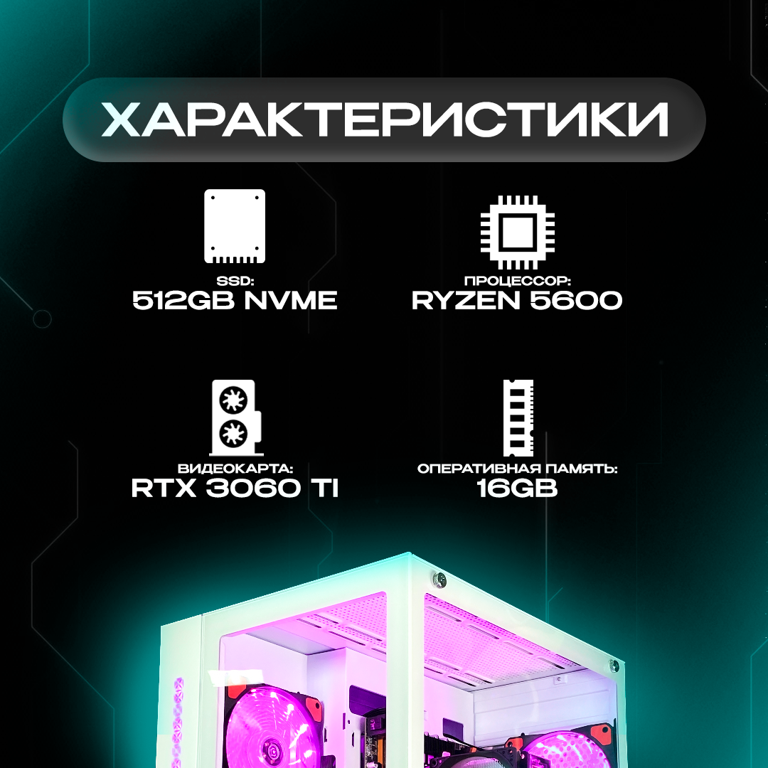 Игровой компьютер RYZEN 5 5600 I RTX 3060TI I 16 RAM I 512 SSD I ITMEDIA "CUBE" информация: