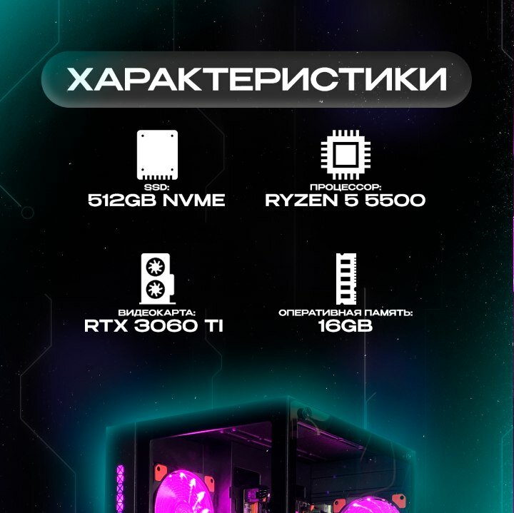 Игровой компьютер RYZEN 5 5500 I RTX 3060TI I 16 RAM I 512 SSD I ITMEDIA "CUBE" информация: