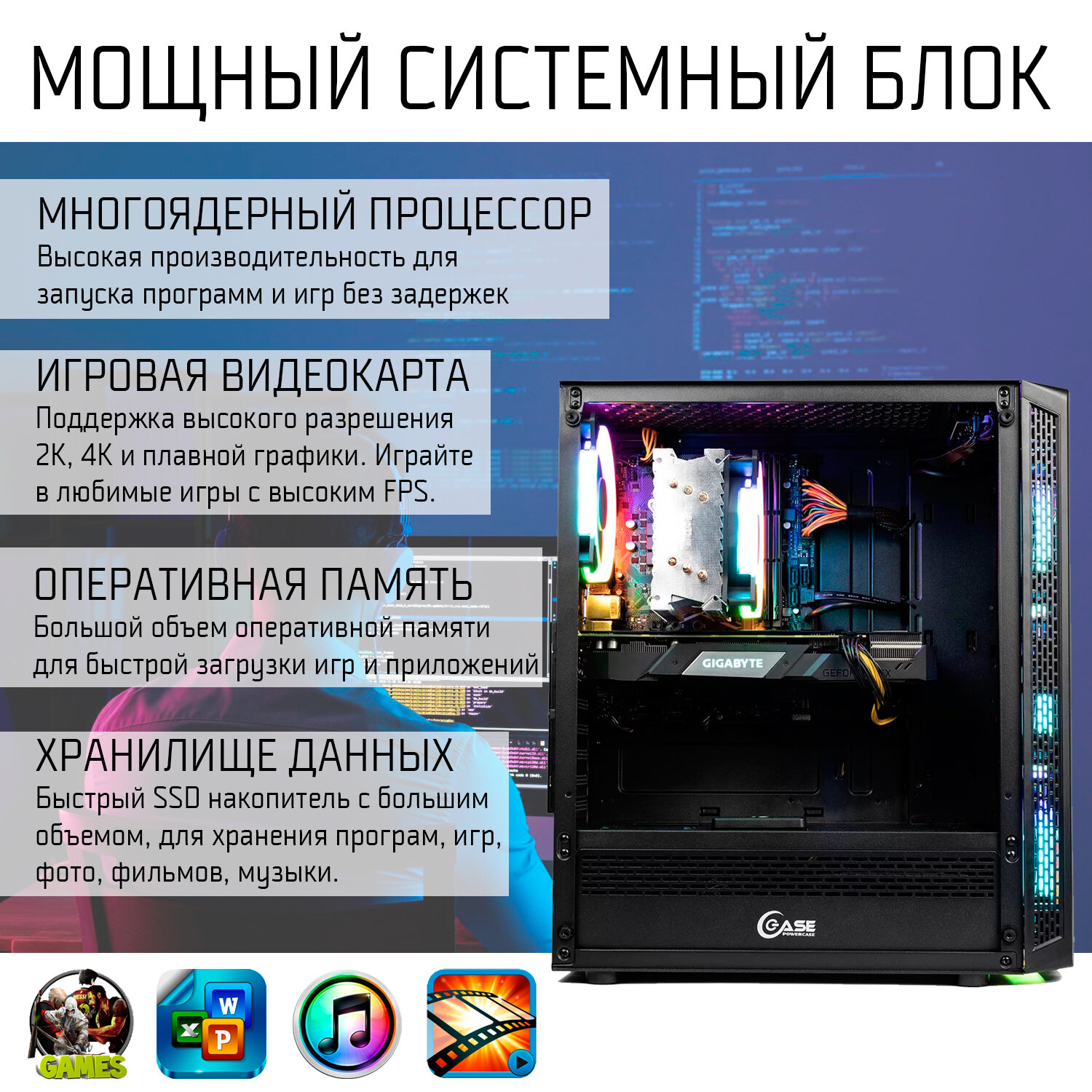 Мощный компьютер для игр/стрима/монтажа i5 12400F / 16Gb DDR4 / RTX 3060 12Gb GDDR6 / SSD M2 512Gb / 600W / Windows 10 Pro