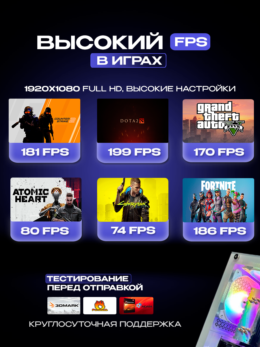 Системный блок мощный игровой i3 10100F / 16Gb / RTX 2060 SUPER 8GB / SSD 512Gb / Windows 11 Pro + WiFi