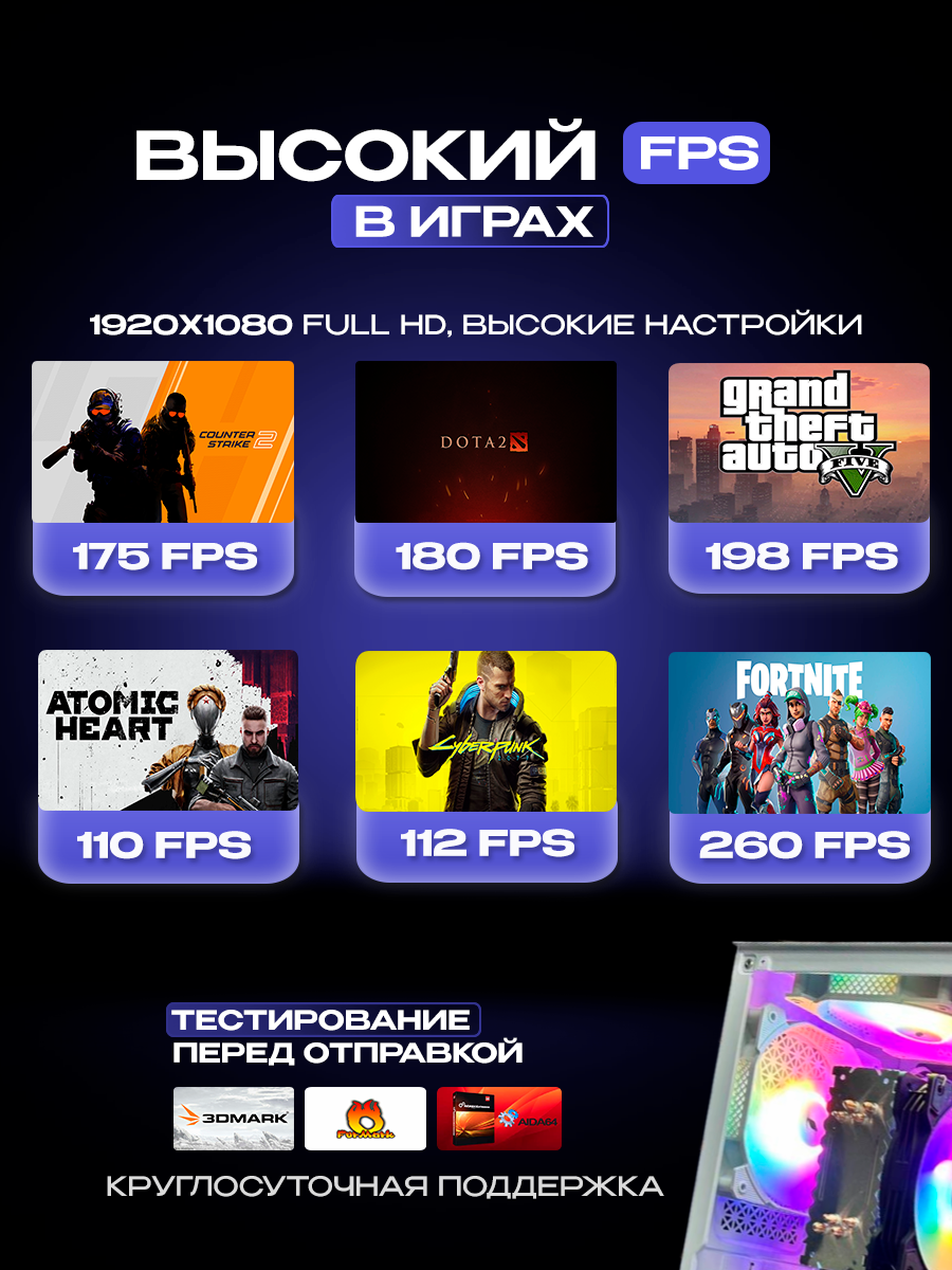 Игровой компьютер Intel Core i5-11400F (4.4 GHz), RTX 2060 SUPER 8ГБ, 16ГБ RAM, SSD 512ГБ информация: