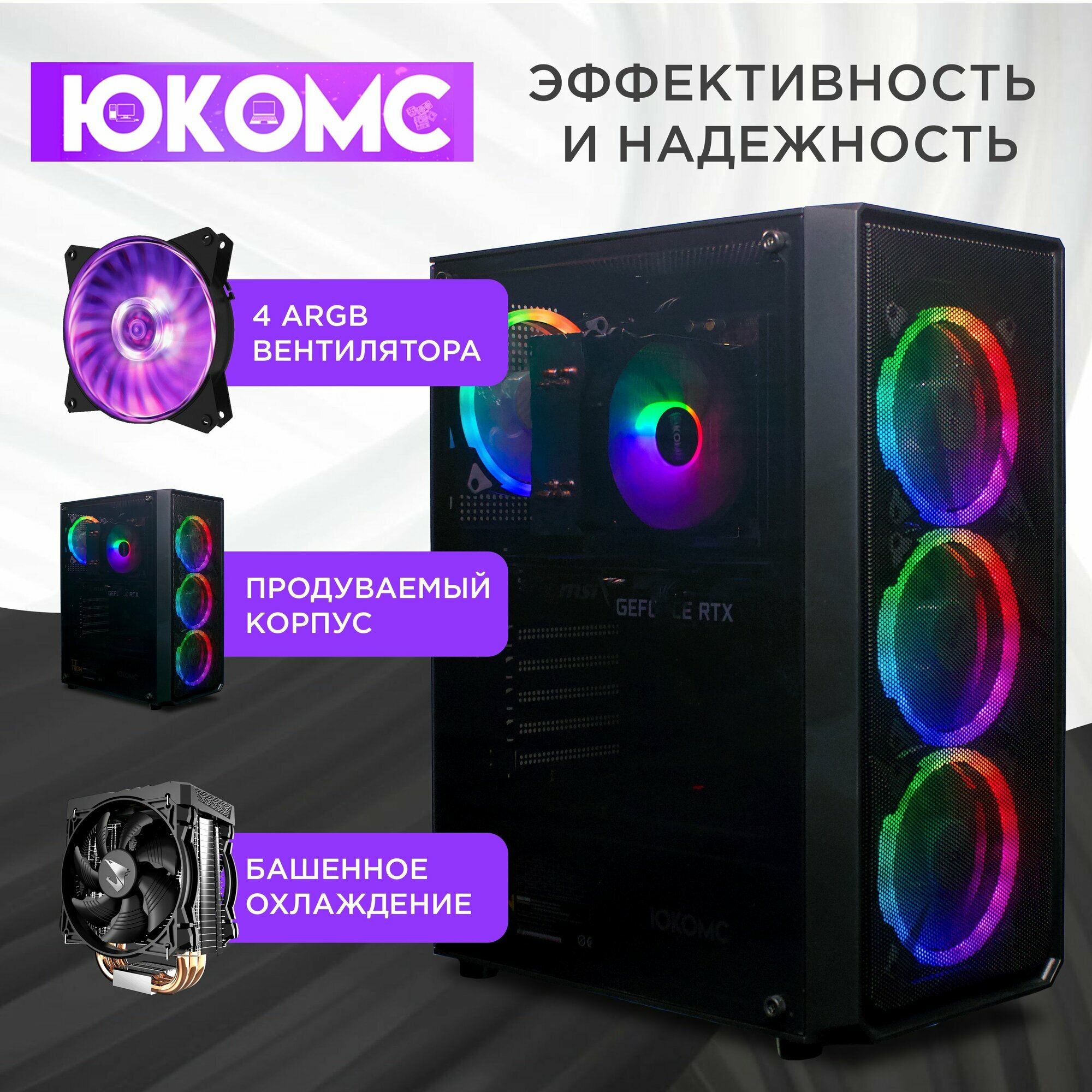 Игровой компьютер юкомс I5 12400F, RTX 2070 Super 8GB, SSD 256GB, 16GB DDR4, БП TT600 600W, win 10 pro, Игровой юкомс чёрный 70 880 ₽