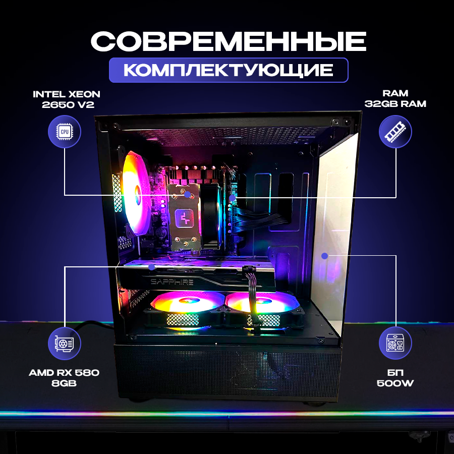 Игровой компьютер Core i7 6 ядер (xeon 2650v2) / AMD RX580 8GB / 32GB RAM / SSD m.2 500GB 35 400 ₽