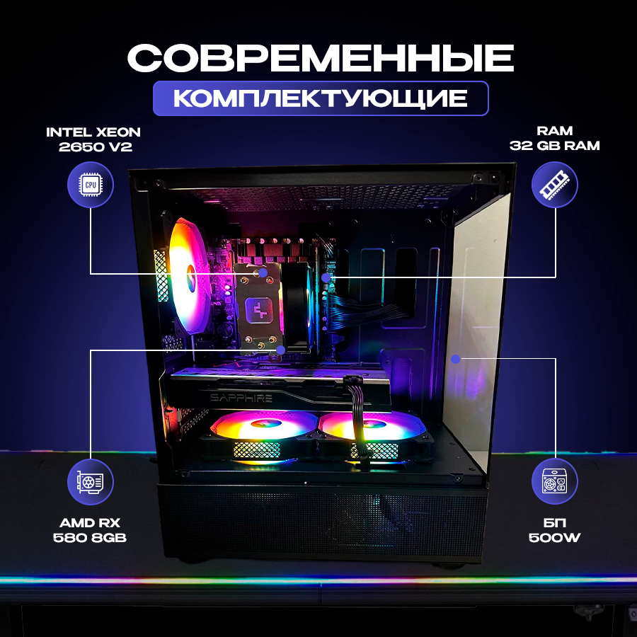 10 цен на Игровой компьютер Core i7 6 ядер (xeon 2650v2) / AMD RX580 8GB / 32GB RAM / SSD 128GB