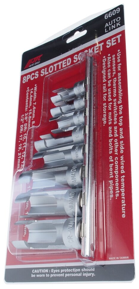 JTC Набор головок глубоких разрезных 3/8 DR 10, 11, 12, 13, 14mm, 1/2 DR 17, 19, 21mm для демонтажа датчиков кислорода информация: