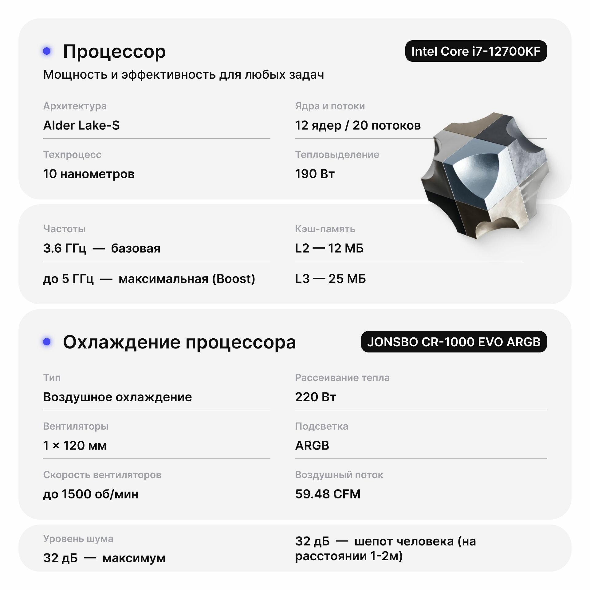 Игровой системный блок ProMid6916: i7-12700KF, DDR5 32Gb, SSD 500GB, RX 7800 XT, 800W, V390 , Windows 11 Pro информация:
