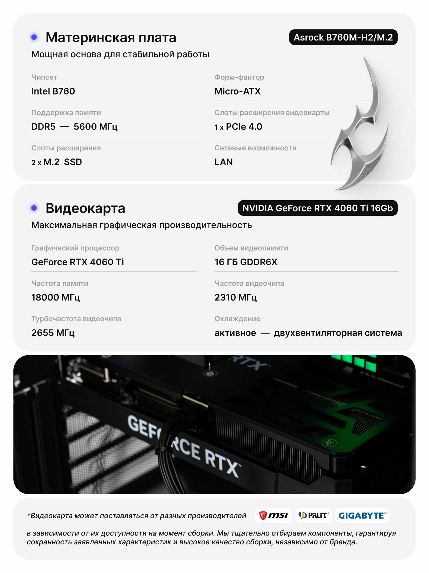 0 отзывов, средняя оценка 0. Чтобы купить «Игровой системный блок ProMid6627: i7-13700KF, DDR5 64GB, SSD 2Tb, RTX 4060 Ti 16Gb, 800W, V490 , Windows 11 Pro» по лучшей цене мы сканируем авито, алиэкспресс, маркет, озон, савеловский, плеер, горбушку, беру, официальные сайты и находим минимальную. Администрация не несет ответсвенность актуальность цен на Игровой системный блок ProMid6627: i7-13700KF, DDR5 64GB, SSD 2Tb, RTX 4060 Ti 16Gb, 800W, V490 , Windows 11 Pro, более подробно узнавайте на сайте магазина.