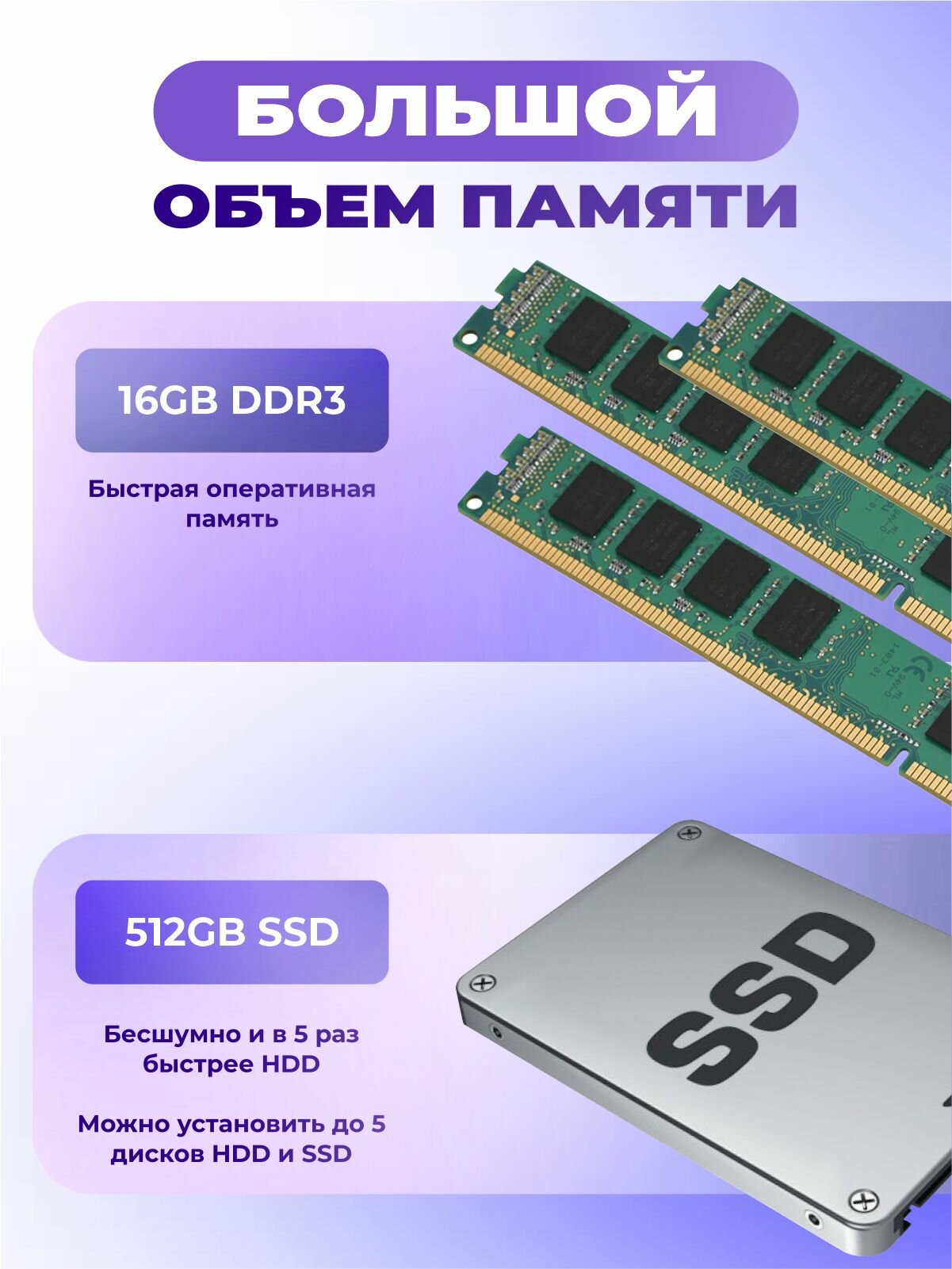 Системный блок, компьютер офисный (Intel core i3 2100, RAM 16GB, HD Graphics, SSD 512 GB, Windows 10 Pro + Office) информация: