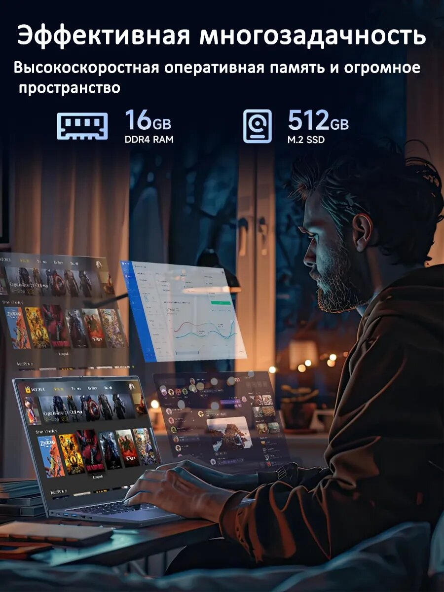 Ноутбук Intel N95, NVIDIA GeForce MX330,16+512 ГБ (Отпечаток пальца, подсветка клавиатуры) Windos 11 pro 44 399 ₽