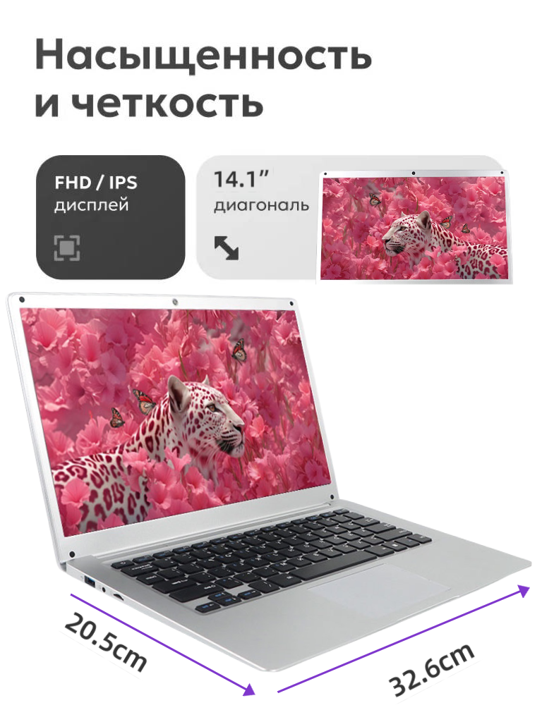 Ноутбук 14 Дюймов", intel celeron N3350, RAM 8ГБ, SSD256 ГБ, Windows Pro, Серый, Русская раскладка информация:
