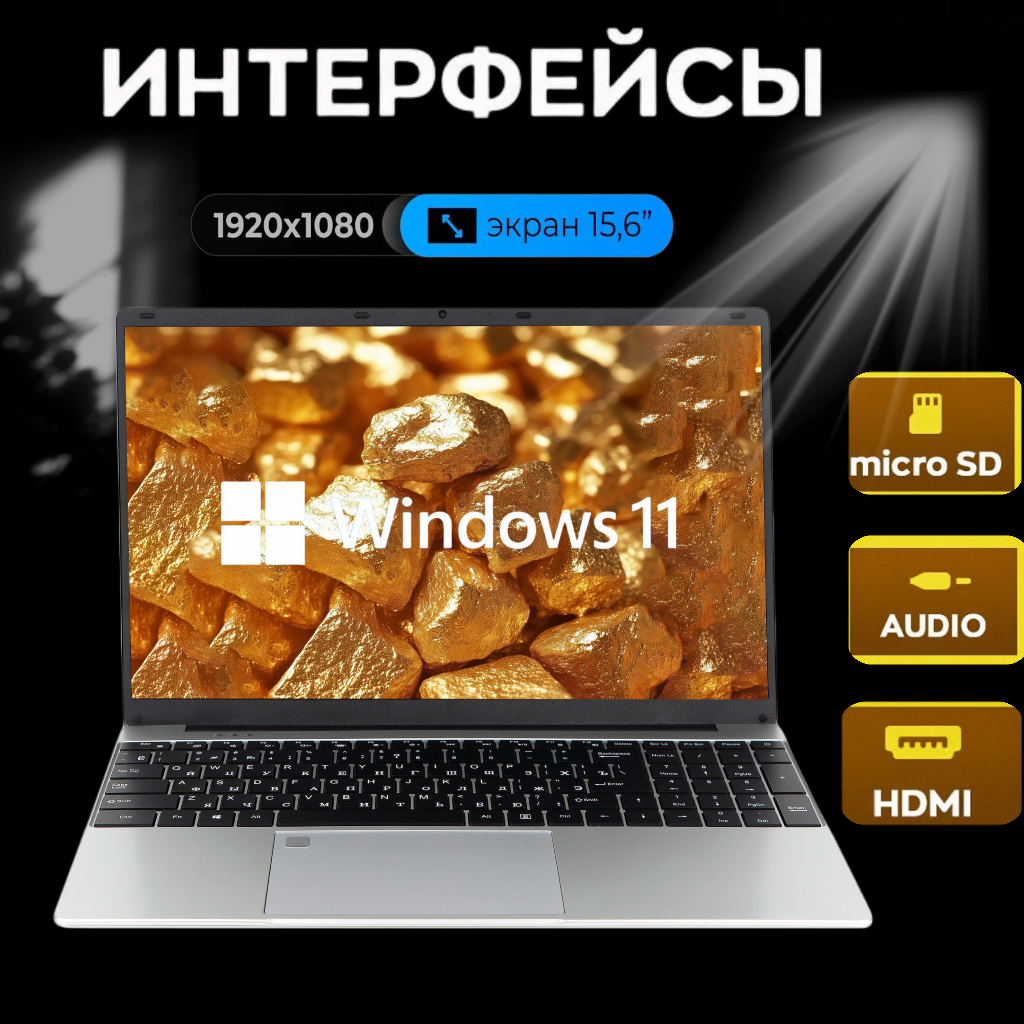 Ноутбук 15,6" с процессором Intel Celeron5095, 16 Гб ОЗУ, 512 Гб SSD, Windows 11 Серебро 31 300 ₽