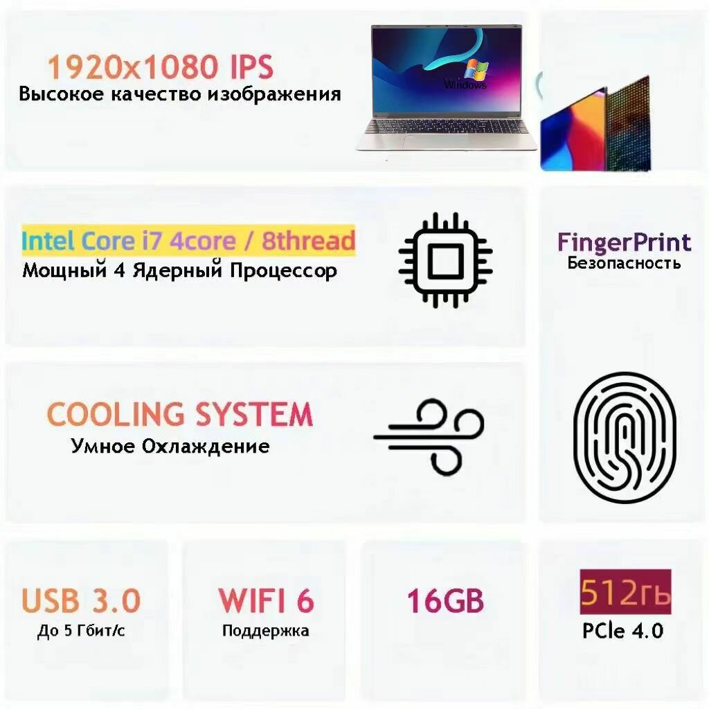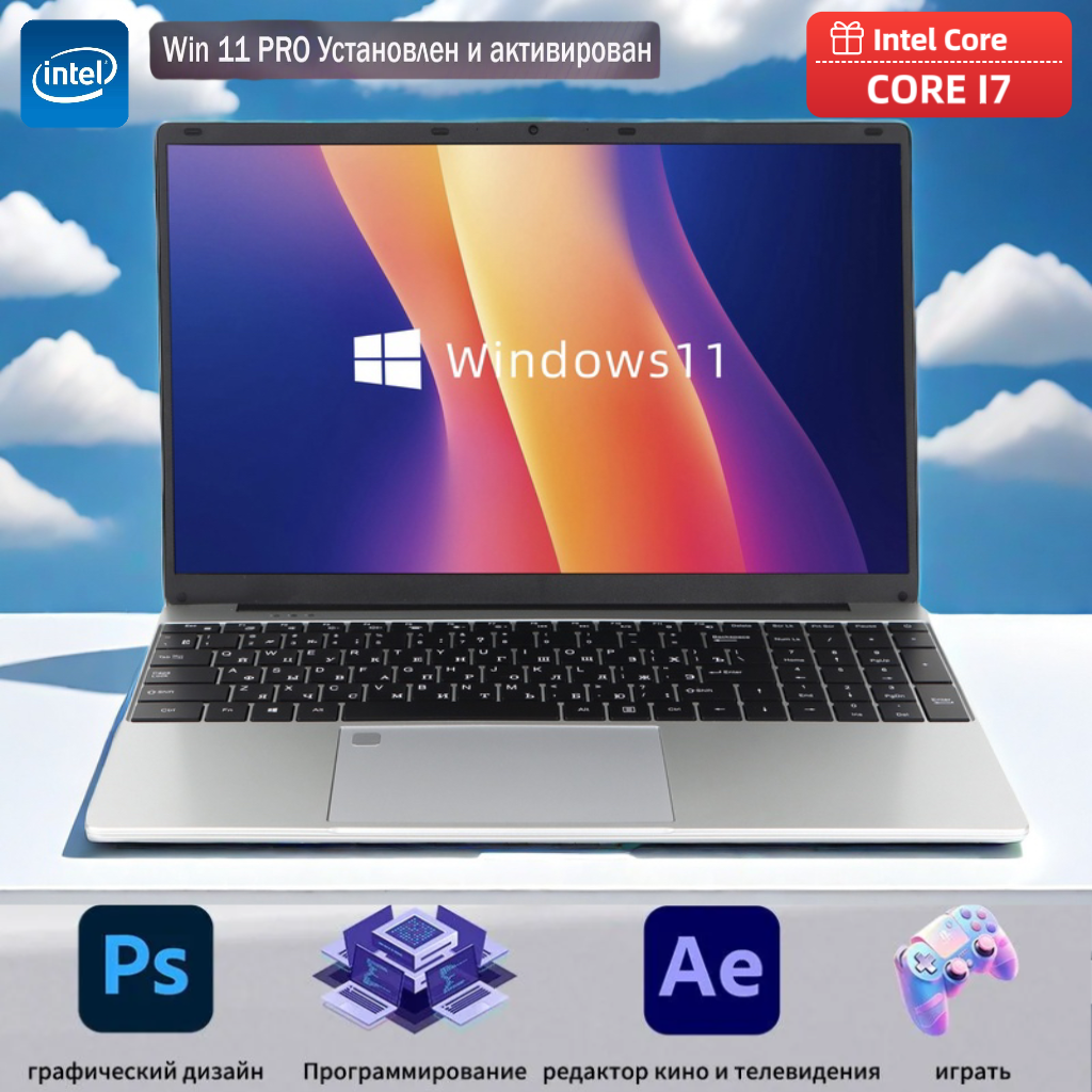 Intel Core i7 - 15,6-дюймовый ноутбук с SSD 512GB, Intel UHD, Windows 11, 16GB RAM Глубокий серый 33 550 ₽