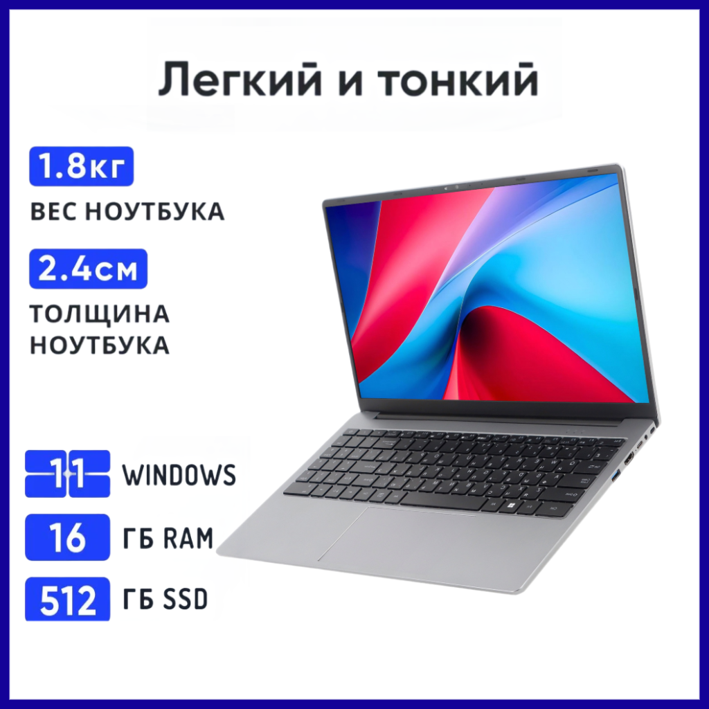 14.1" Ноутбук Intel Core I5 , 16Гб, SSD512GB, Windows 11, Русская раскладка 33 000 ₽