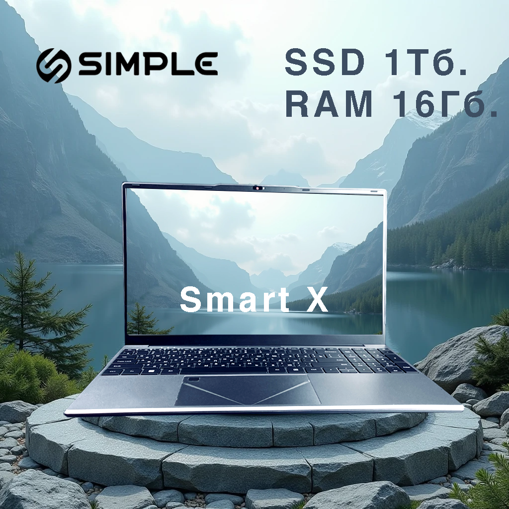 Ноутбук Simple Smart X для работы и учебы, SSD 1 TB, RAM 16Гб. Windows 11, подсветка клавиатуры информация: