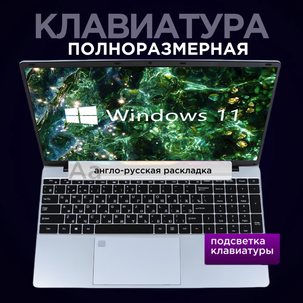 15.6" Ноутбук Intel N95, для работы и учебы, Notebook, RAM 16 ГБ, SSD 1024ГБ, IPS Full HD 1920x1080, Windows 11 pro, цвет Mid Gray, русская раскладка 31 000 ₽