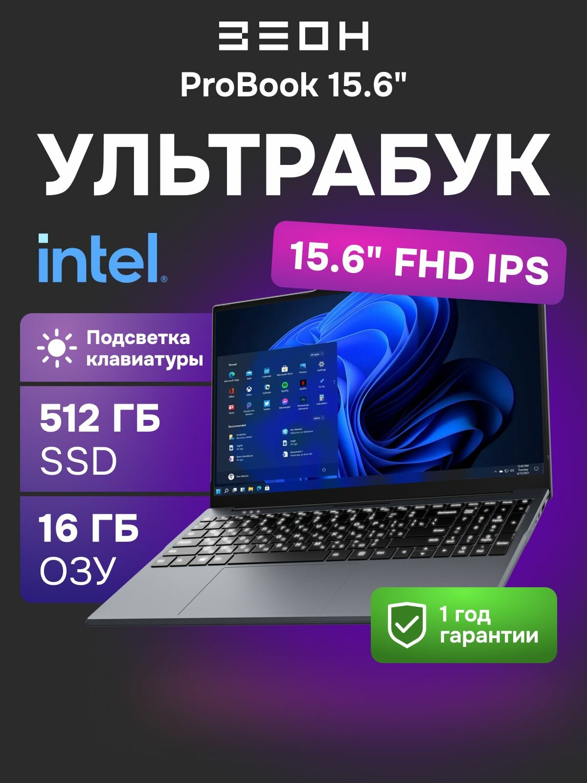 Отзывы на Ноутбук 15.6" ЗЕОН ProBook C151I-C5, Intel N5095A, RAM 16ГБ, 512 ГБ SSD, IPS 1920x1080, Windows 11 Home