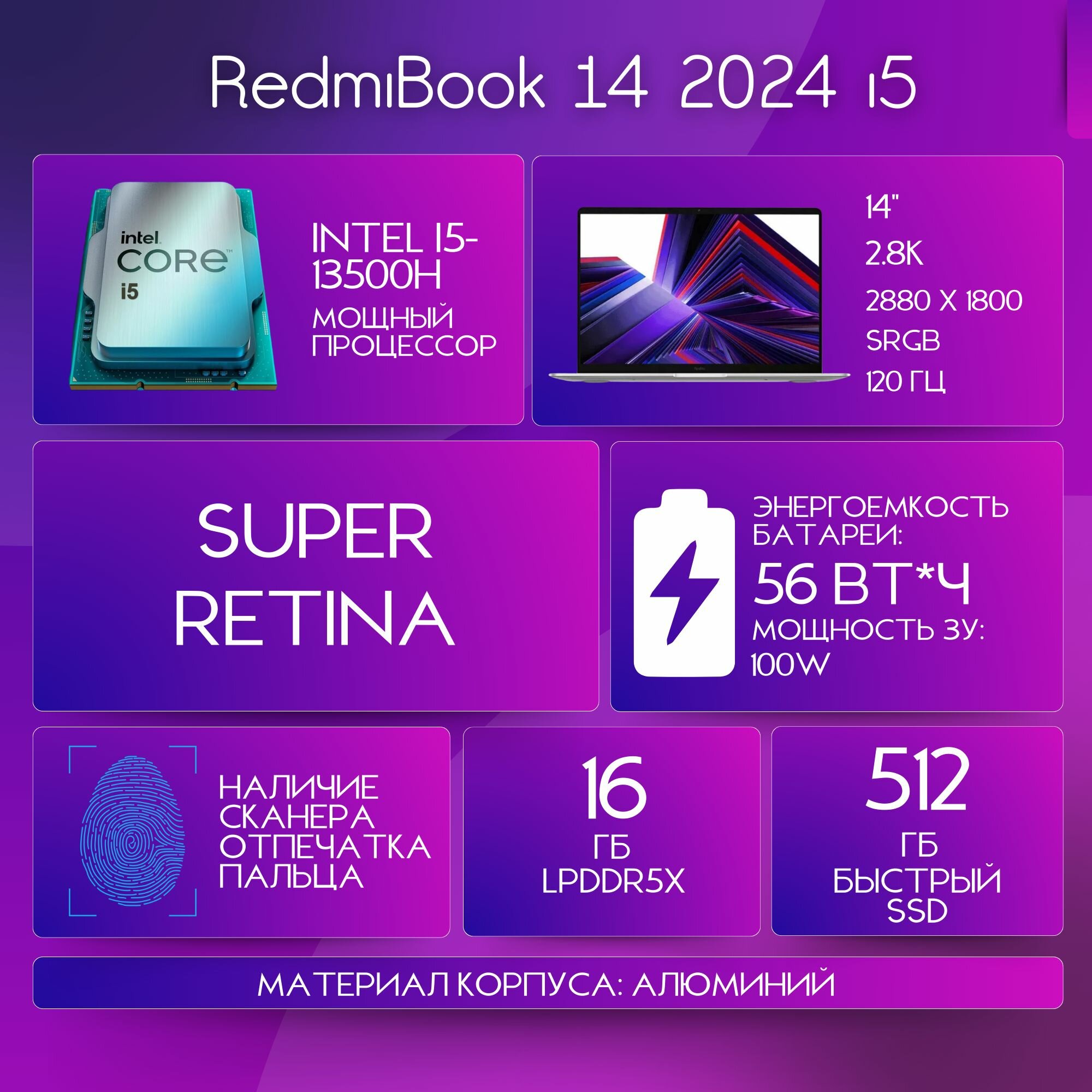 Отзывы на Ноутбук Xiaomi RedmiBook 14, Intel Core i5-12450H, Intel UHD Graphics, RAM 16 GB, SSD 512 GB, серый
