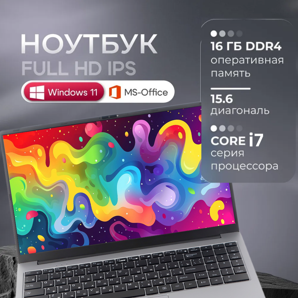 Ноутбук OLOIU Core i7, Windows 11, IPS Full HD, SSD 512 Гб, 15", 16 Гб, Клавиатура на русском языке 34 500 ₽