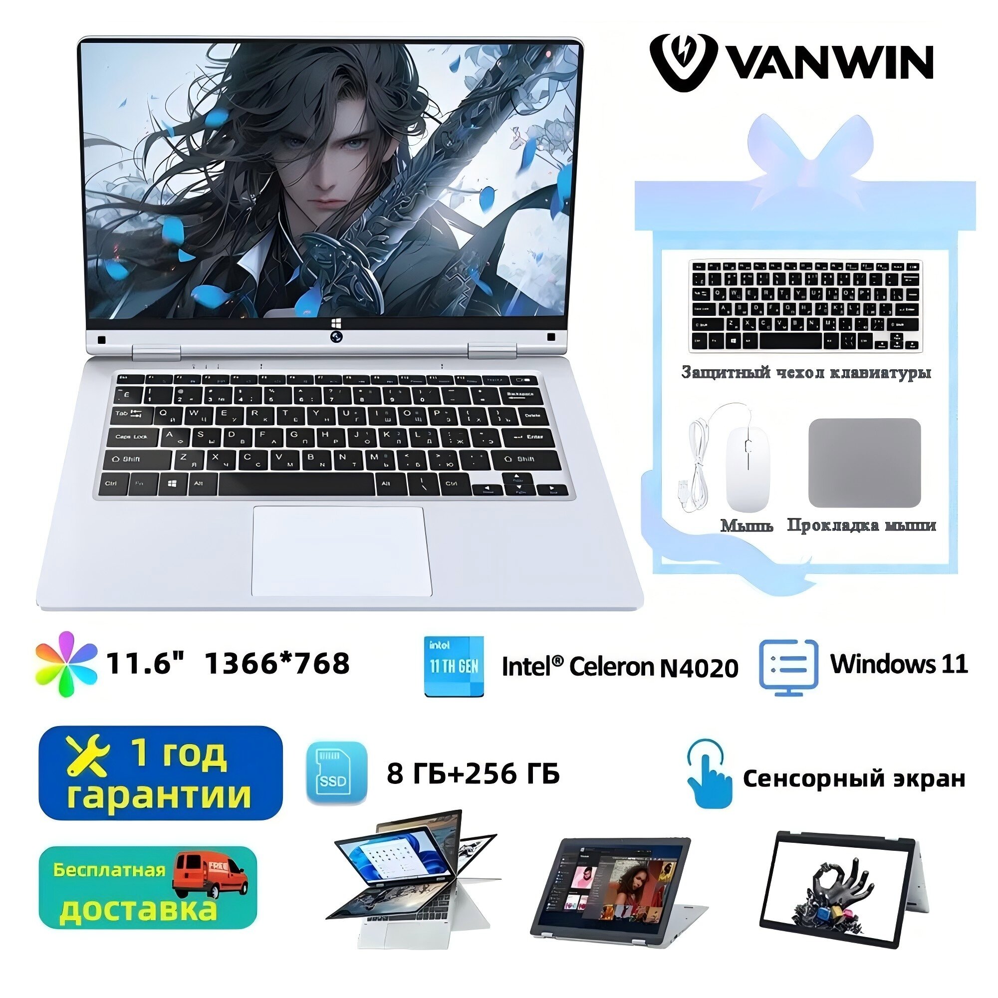 VANWIN Ноутбук с сенсорным экраном, 11.6", , Intel Celeron N4020C, RAM 8 ГБ, SSD 256 ГБ, Планшетный 2-в-1 Ноутбук информация: