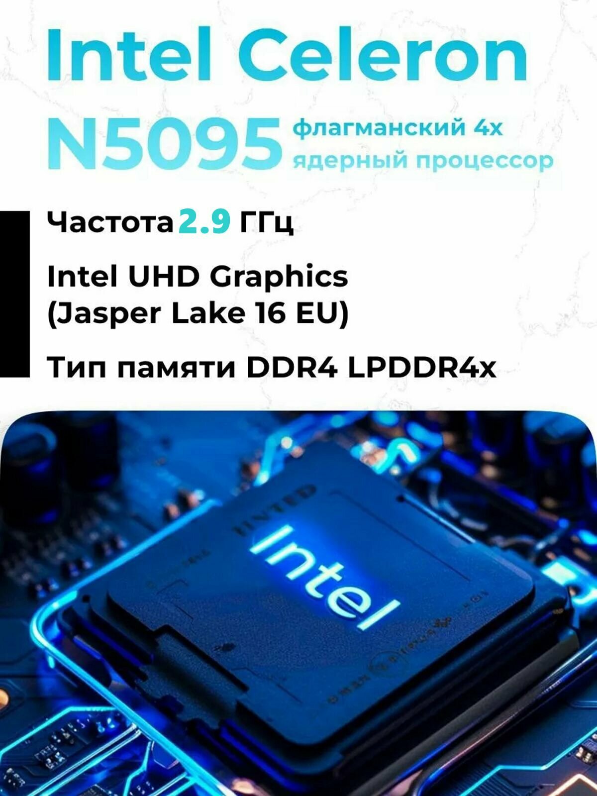 10 цен на 15,6 ноутбук Intel Celeron N5095 (до 2.9 GHz, 4 ядра), RAM 12 GB, SSD 512 GB, Intel UHD Graphics, Русская клавиатура, Windows 10 Pro