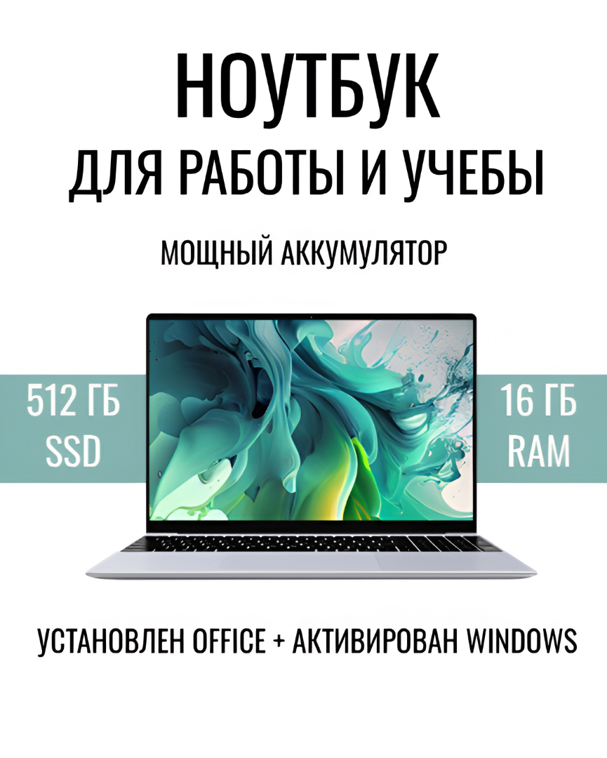 Ноутбук для работы и учебы DIVAO 15,6" Intel N95 DDR4 16 Гб SSD 512 Гб NVME Windows 11 Pro ноутбук игровой, металлик информация: