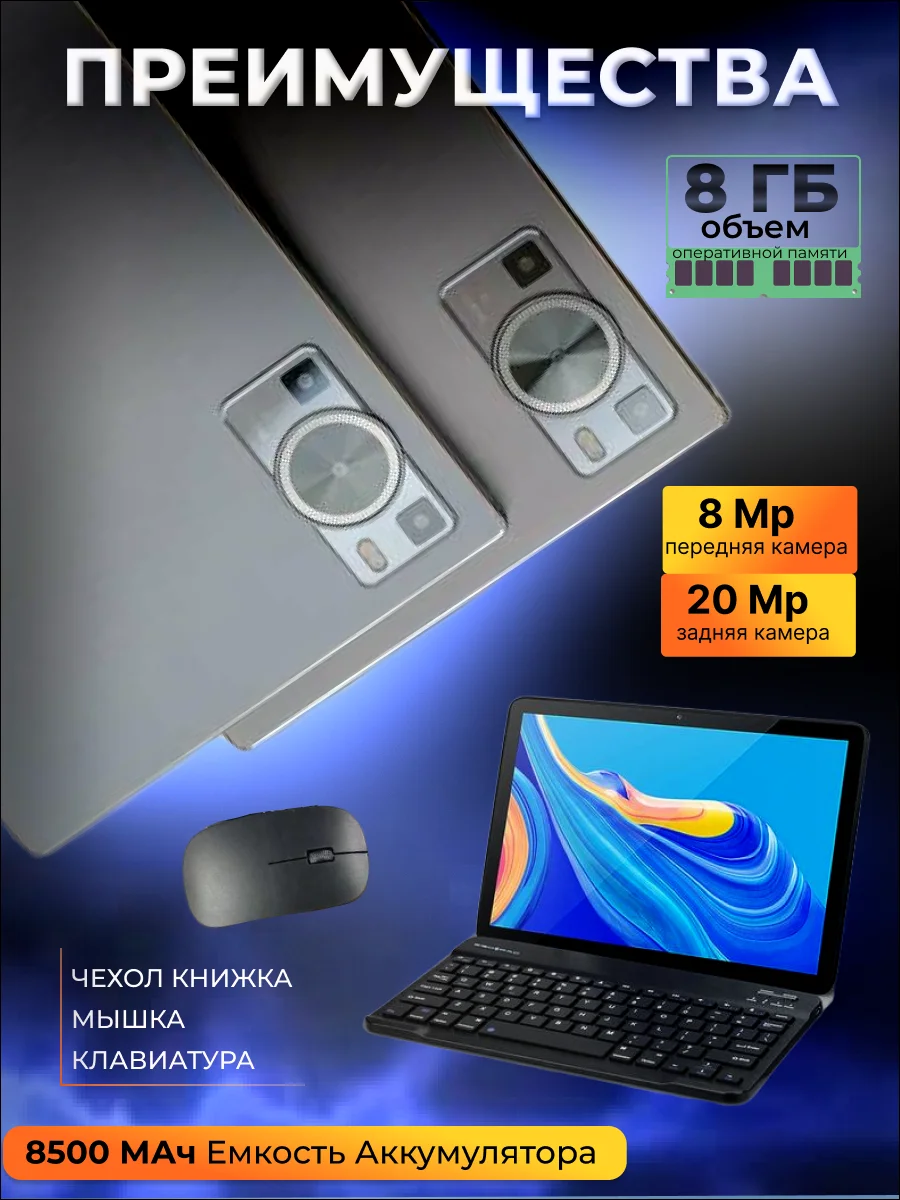 Мощный игровой планшет 2024 с клавиатурой, чехлом 8/512GB, 10.1" Android 12