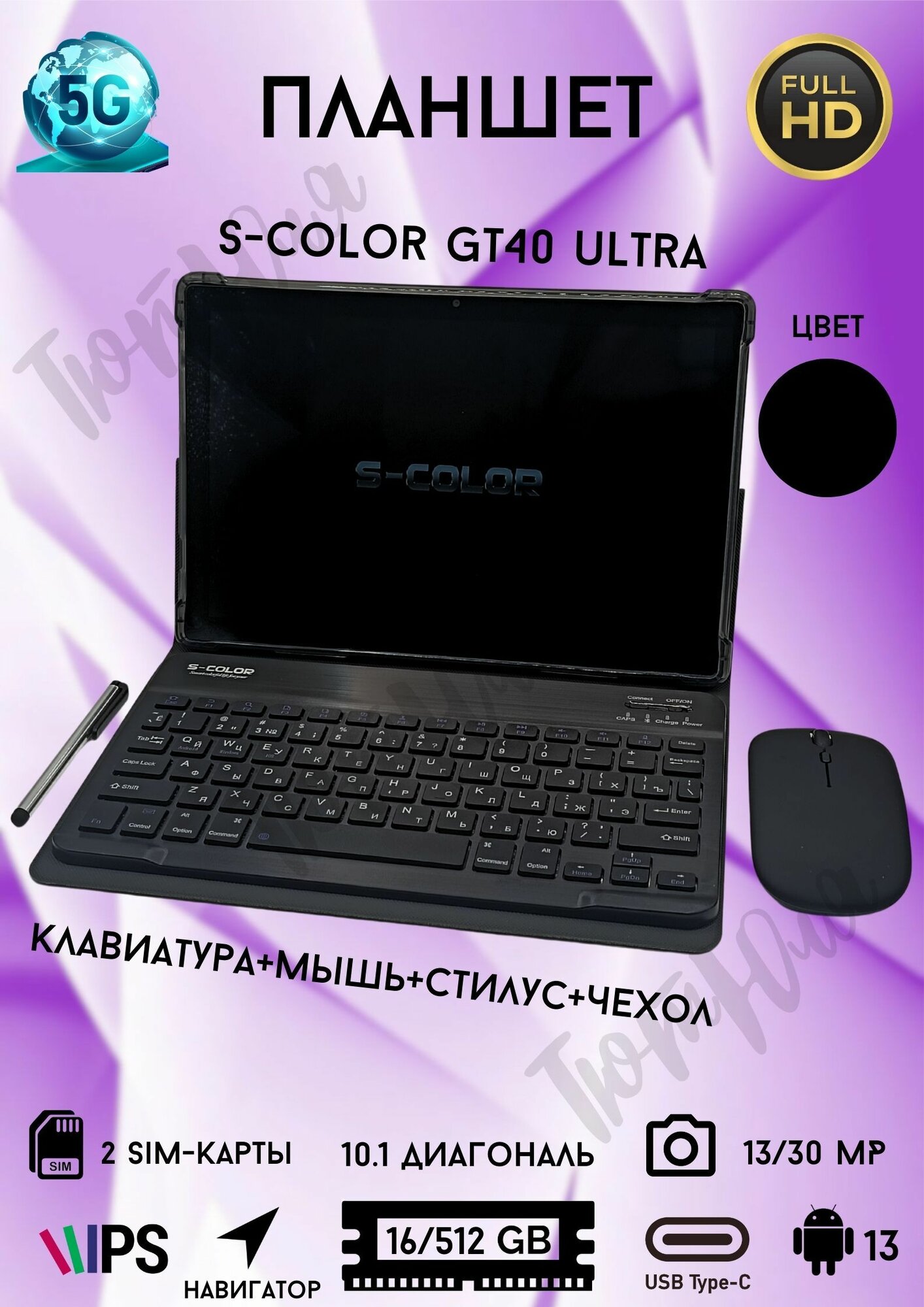 Планшет андроид с клавиатурой и мышью S-COLOR GT40 Ultra 16/512 ГБ информация: