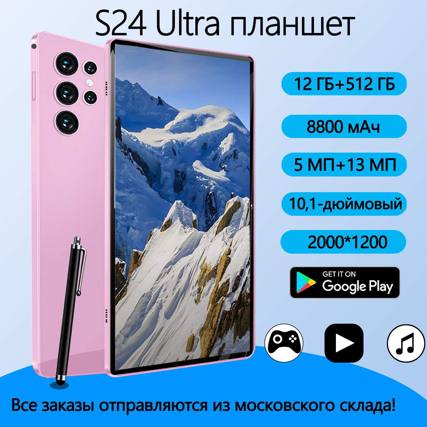 10 цен на 10.1"планшет S24 Ultra(2024), Русская версия,12 ГБ/512ГБ, Android 13 /8800 мАч, магазин Google/play store/розовый