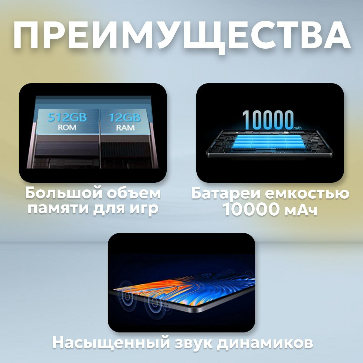 Мощный игровой планшет 2024 с клавиатурой, чехлом 8/512GB, 10.1" Android 12