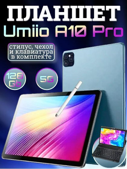 10 цен на Планшет Umiio A10 Pro с клавиатурой, чехлом и стилусом, 6/128Гб, Android 11, экран 10.1", синий