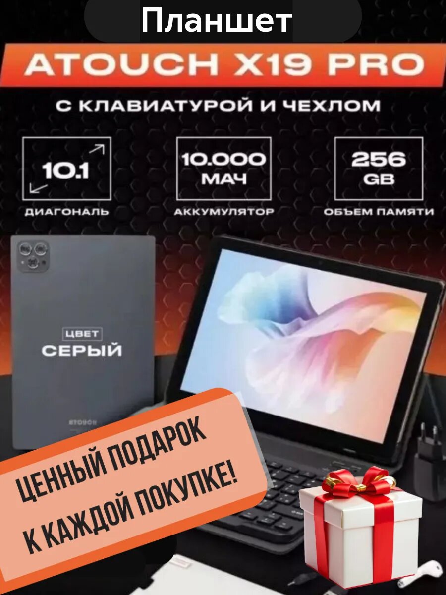 10 цен на Планшет с клавиатурой андроид X19PRO 8/256 ГБ+подарок