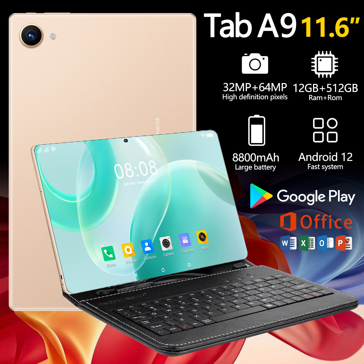 Планшет с клавиатурой TABA9,12+512 ГБ, 11,6-дюймовый, Android 13, 8800 мАч, 32+64 МП, планшет игровой,планшет детский информация: