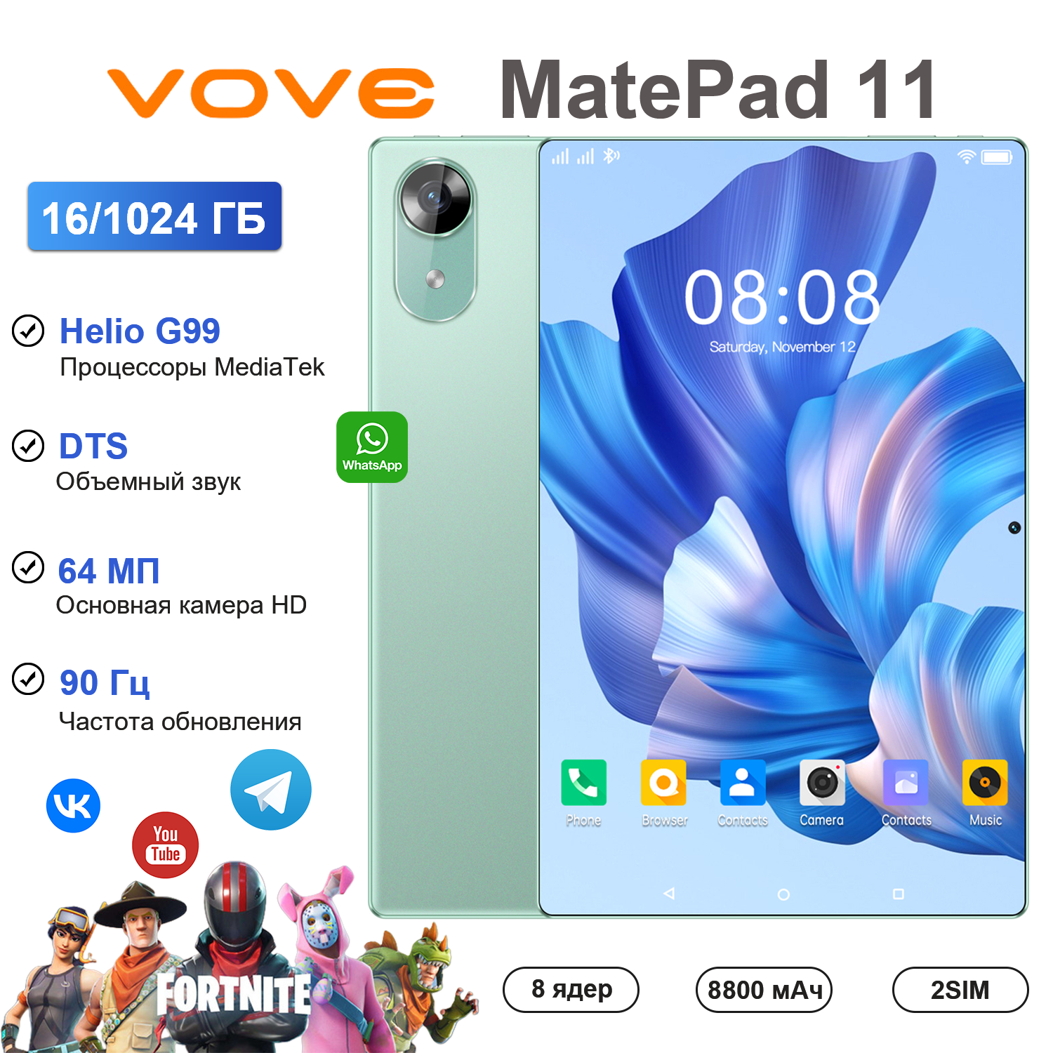 10 цен на Планшет андроид 16+1024 ГБ, Android, русское меню, 8800 мАч, С русской клавиатурой и защитным чехлом, зеленый
