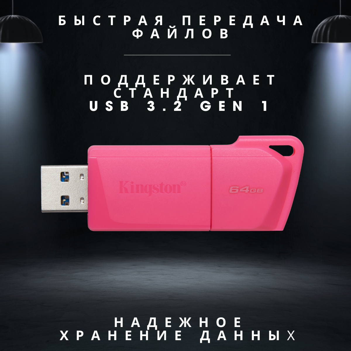 Флешка Kingston USB-накопитель DataTraveler Exodia M 64GB USB 3.2 NEON (PINK) розовый информация: