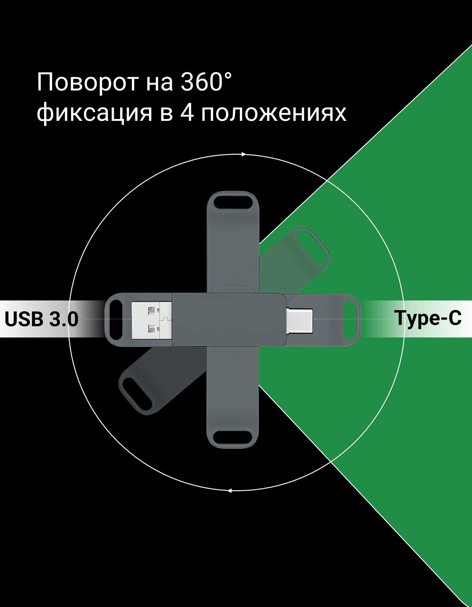 Флеш-накопитель 128 ГБ USB Type-C и USB 3.0 с поворотным металлическим корпусом информация: