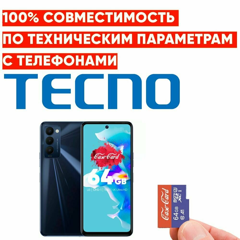 Карта памяти для TECHNO / флешка подходит для телефона техно 64 гб Case Card 10 U3 V30 Ultra HD информация: