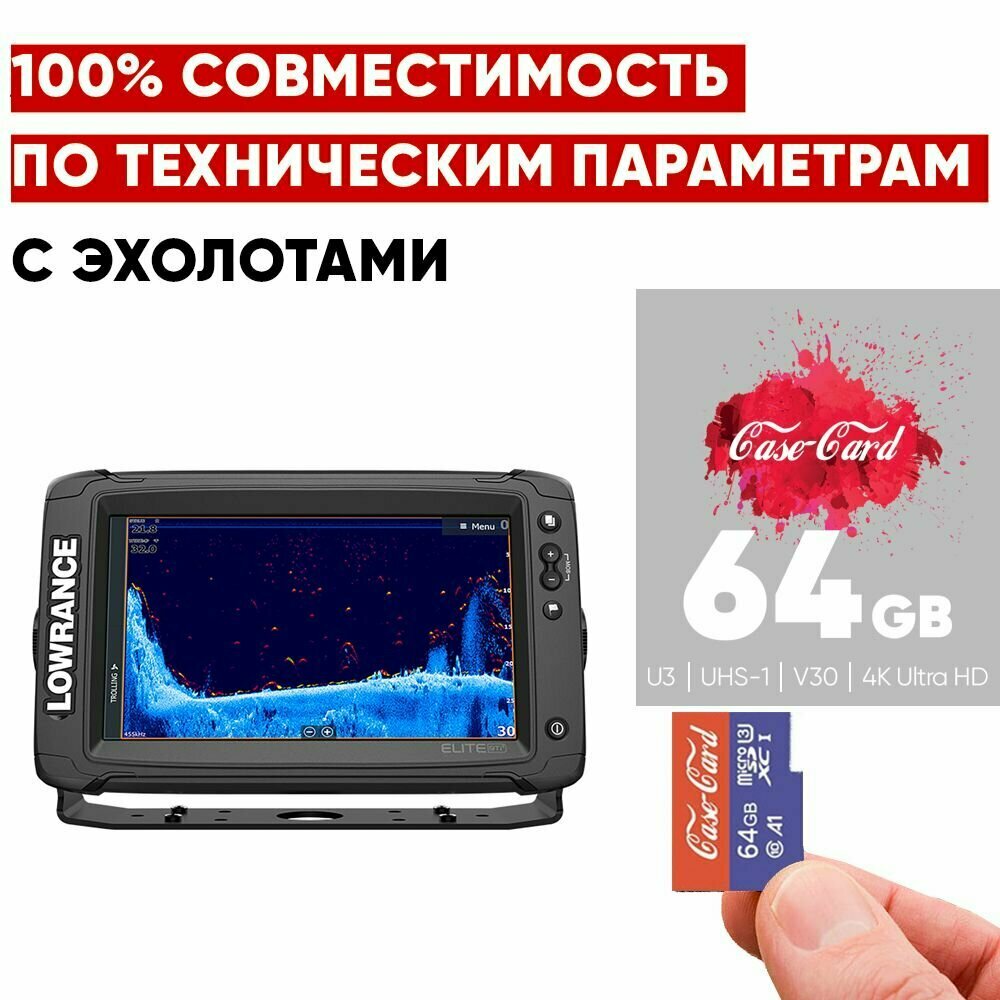 Карта памяти для эхолота Lowrance / флешка 64 гб и SD адаптер U3 V30 UHS-1 информация:
