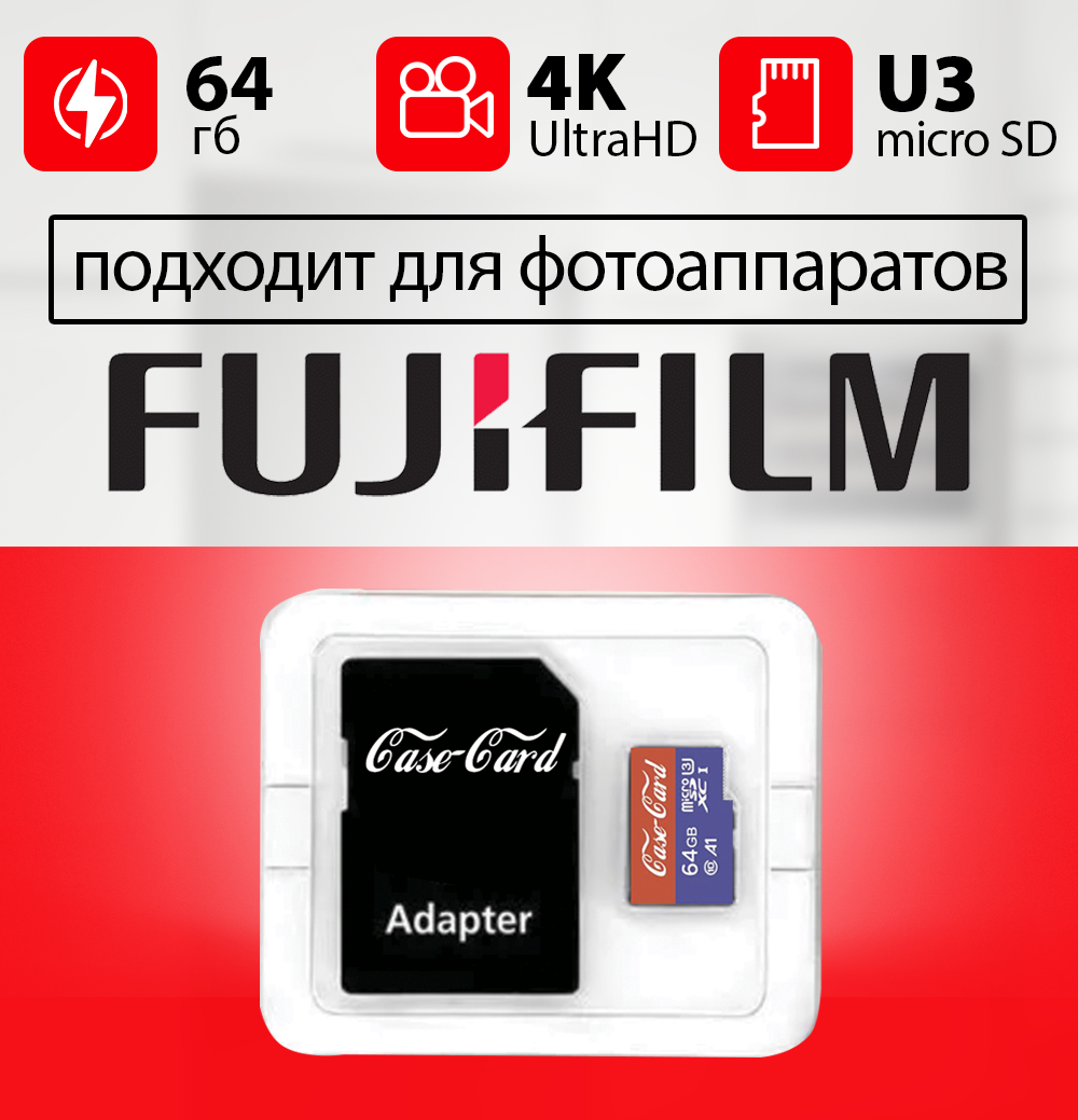 Карта памяти для фотоаппарата Fujifilm / флешка подходит для Фуджифильм 64 гб Case Card 10 U3 V30 Ultra HD информация: