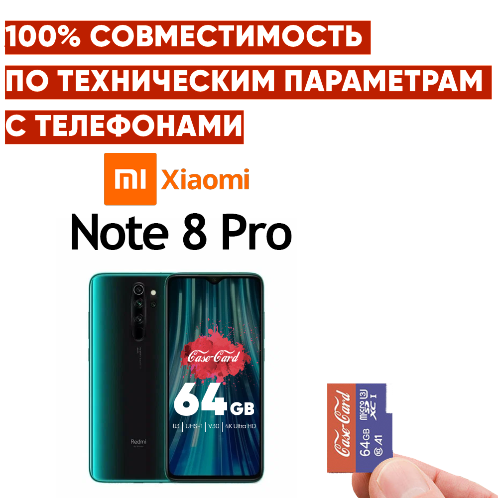 Карта памяти для REDMI Note 8 pro / флешка подходит для телефона Редми Ноут 8 про 64 гб Case Card 10 U3 V30 Ultra HD информация: