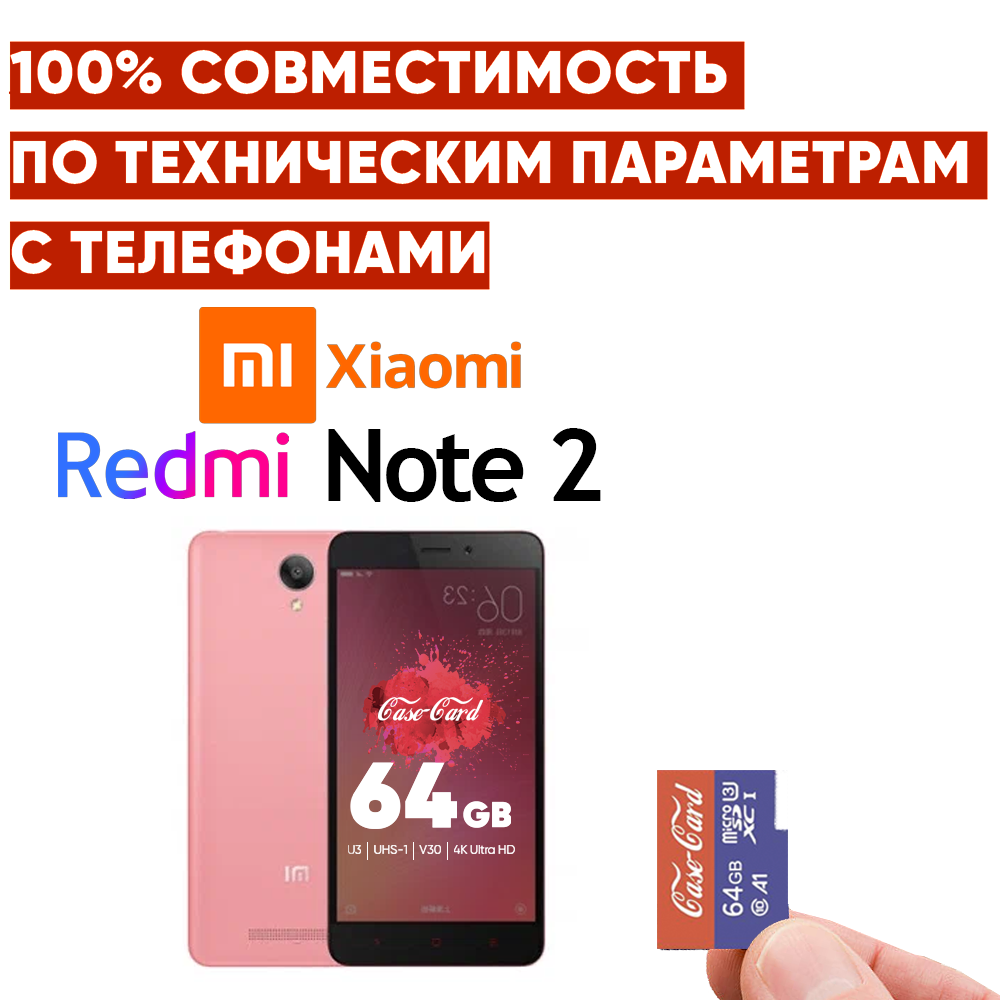 Карта памяти для REDMI Note 2 / флешка подходит для телефона Редми Ноут 2 64 гб Case Card 10 U3 V30 Ultra HD информация: