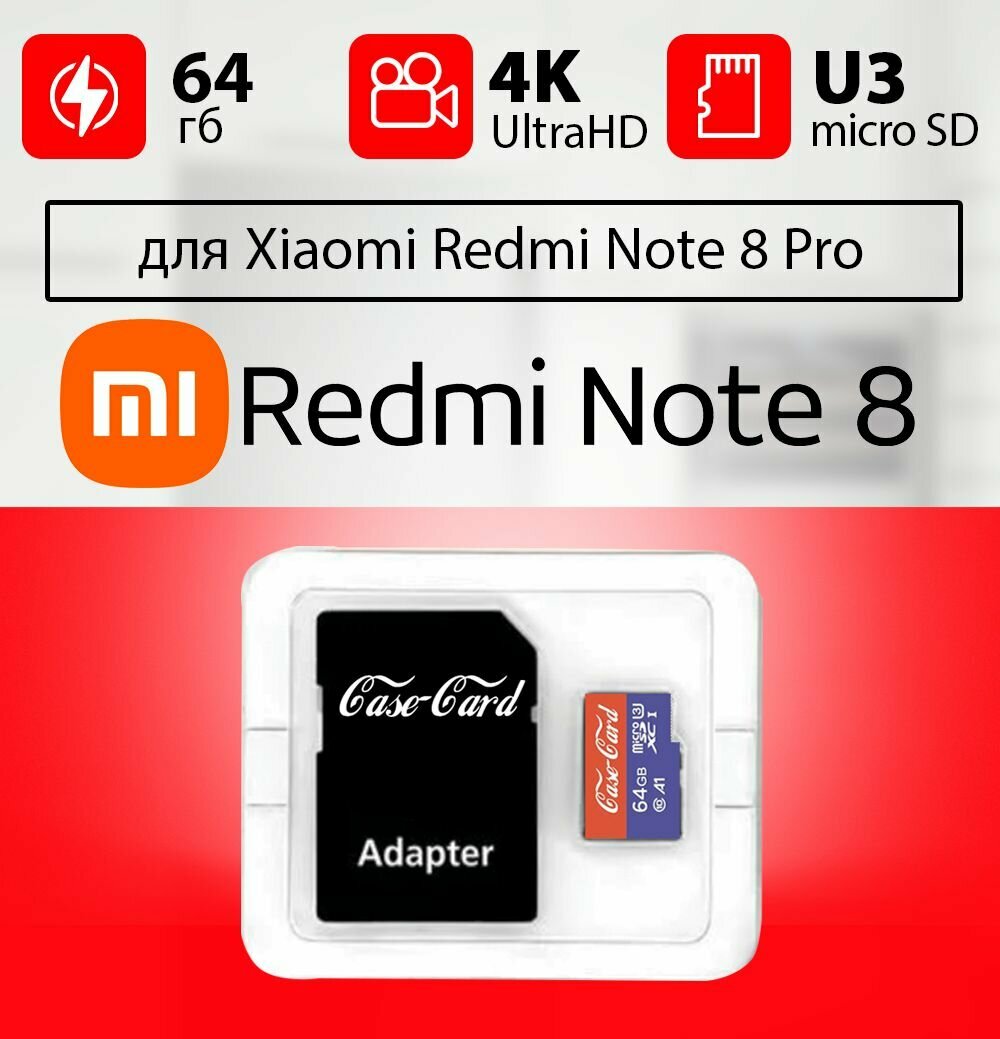 Карта памяти для xiaomi Redmi Note 8 Pro / флешка для телефона сяоми 64 гб класс 10 U3 V30 UHS-1 запись 4K Ultra HD информация:
