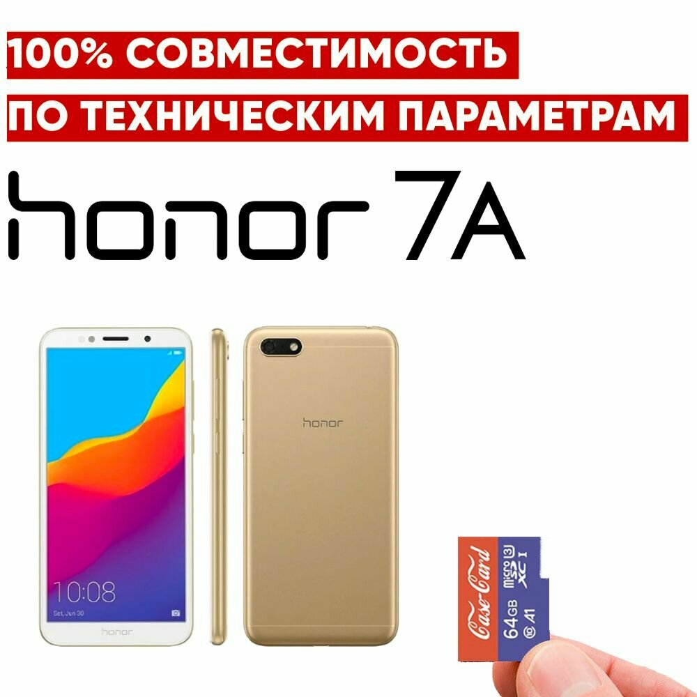 Карта памяти для HONOR 7a / флешка подходит для телефона хонор 7a 64 гб Case Card 10 U3 V30 Ultra HD информация: