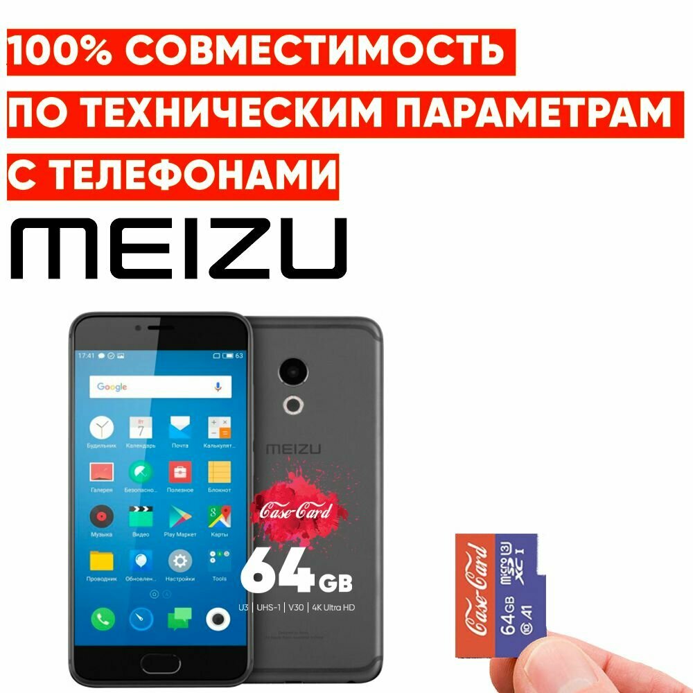 Карта памяти для MEIZU / флешка подходит для телефона мейзу 64 гб Case Card 10 U3 V30 Ultra HD информация: