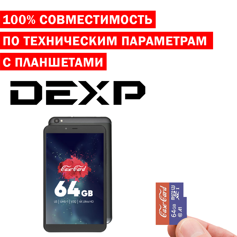Карта памяти для планшета Dexp / флешка подходит для Dexp 64 гб Case Card 10 U3 V30 Ultra HD информация: