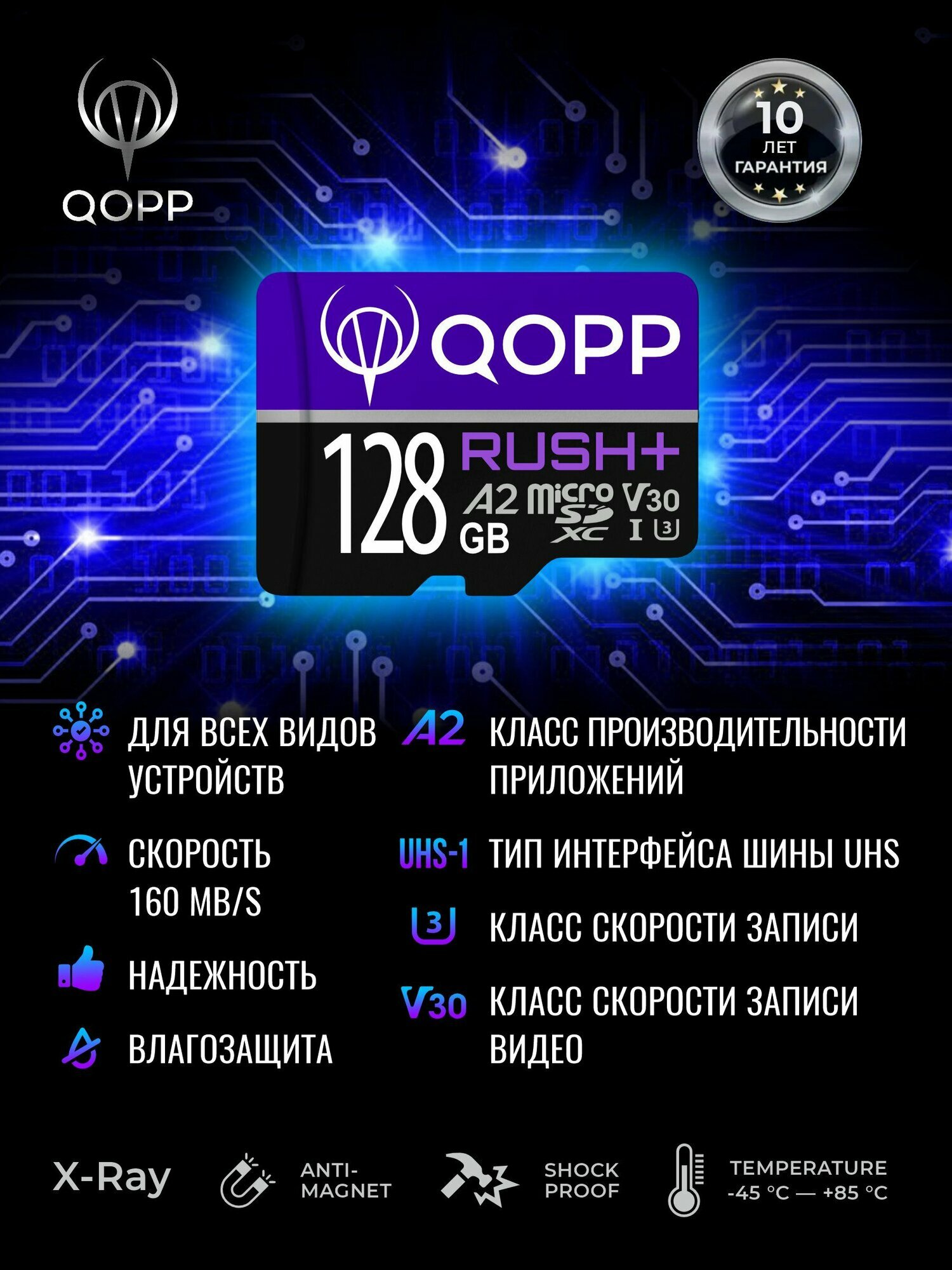 Карта памяти 128 Гб QOPP "RUSH+" А2 U3 V30 micro SD XC высокоскоростная информация: