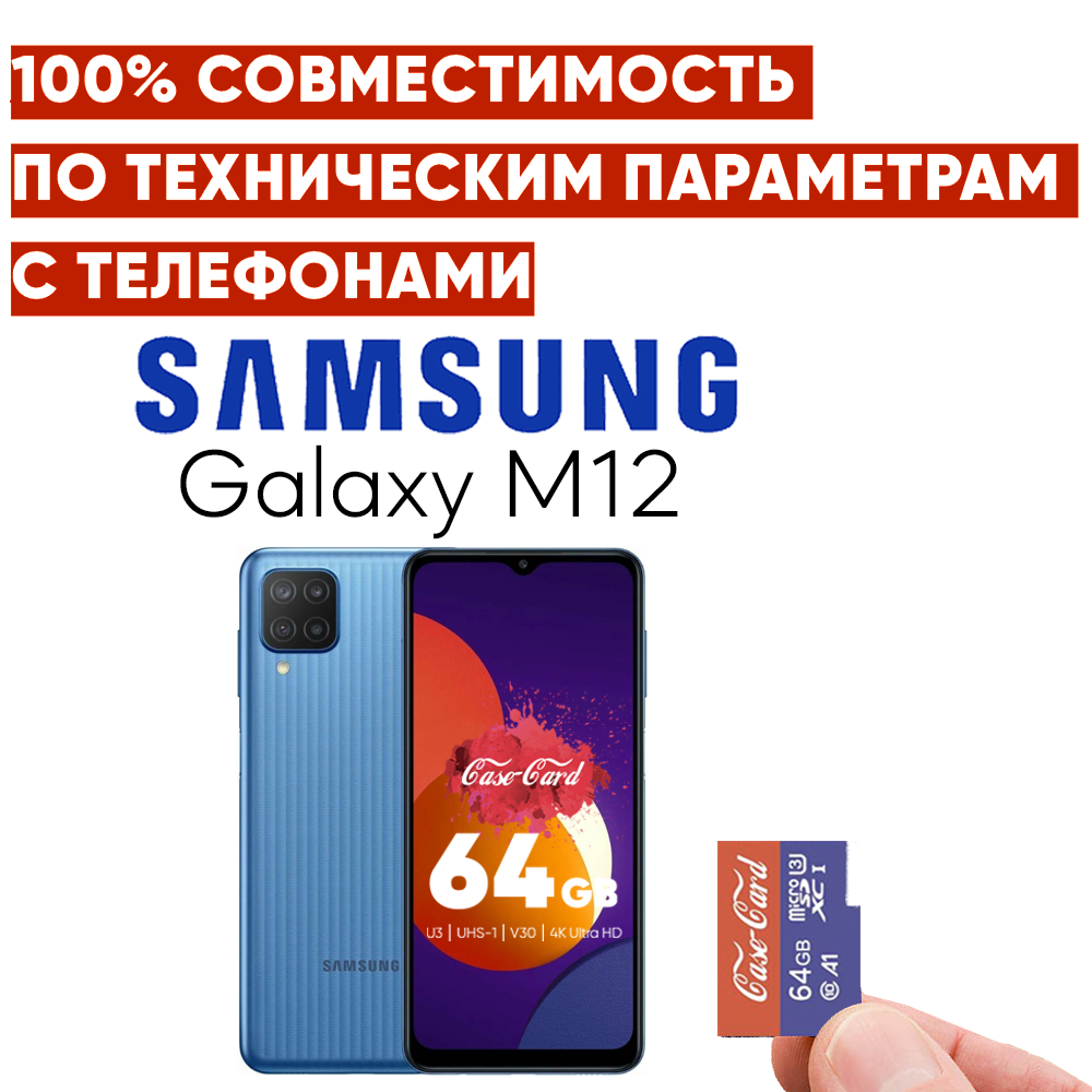 Карта памяти для SAMSUNG M12 / флешка подходит для телефона САМСУНГ М12 Galaxy (галакси) памяти 64 гб Case Card информация: